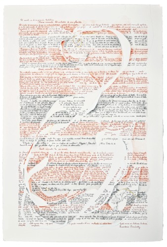 Dialogue de Socrate et Diotime II . Sanguine, fusain, gesso et feuille d'argent sur papier Arches . 76 x 57 cm . 2011