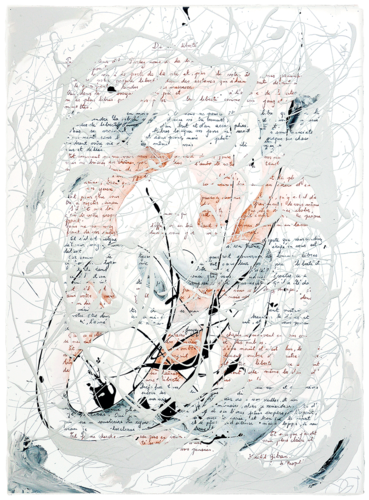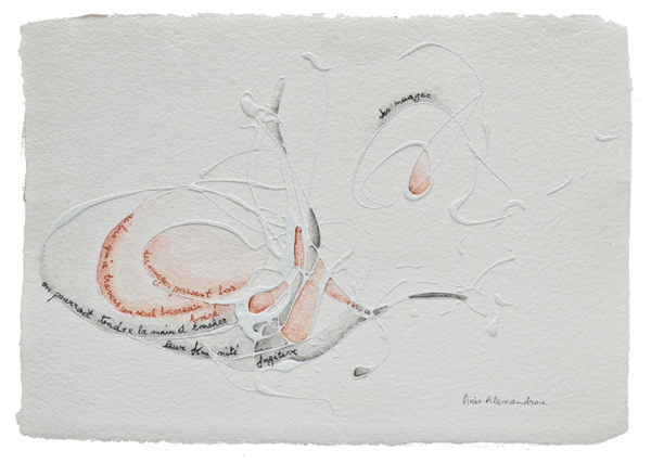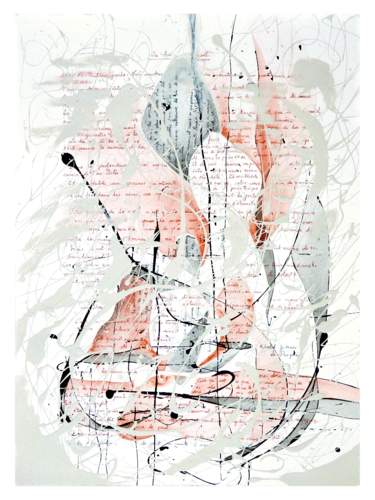 Dialogue de Socrate et Diotime V . Sanguine, fusain, gesso et feuille d'argent sur papier Arches . 57 x 76 cm . 2011